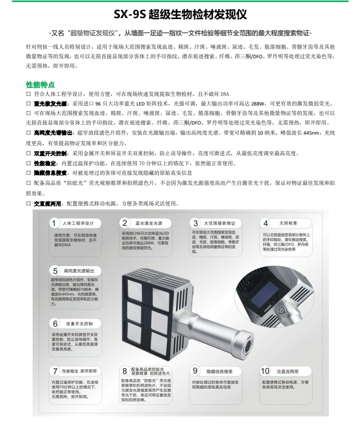 所在位置>刑侦勘查光源>SX-9S超级生物检材发现仪